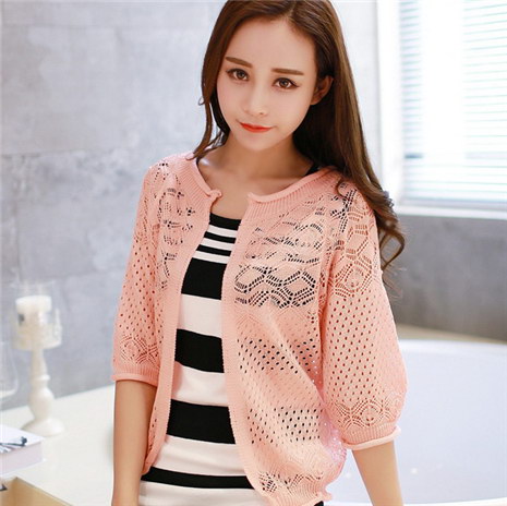 短款薄开衫女装春夏季新款镂空空调衫韩版毛衣外搭针织外套小披肩